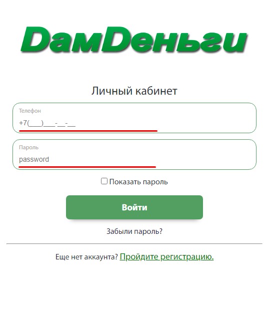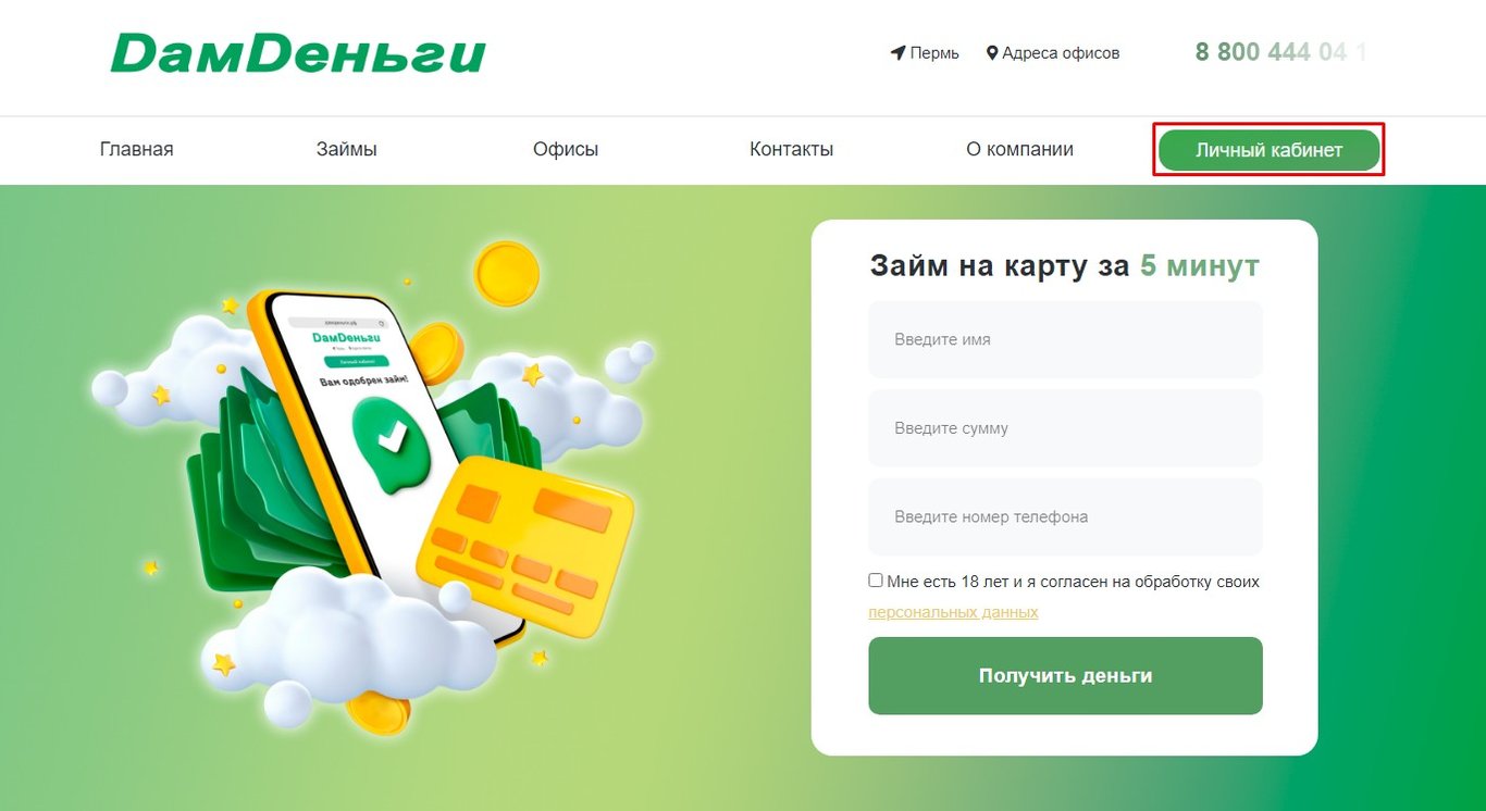 Личный кабинет Дам деньги