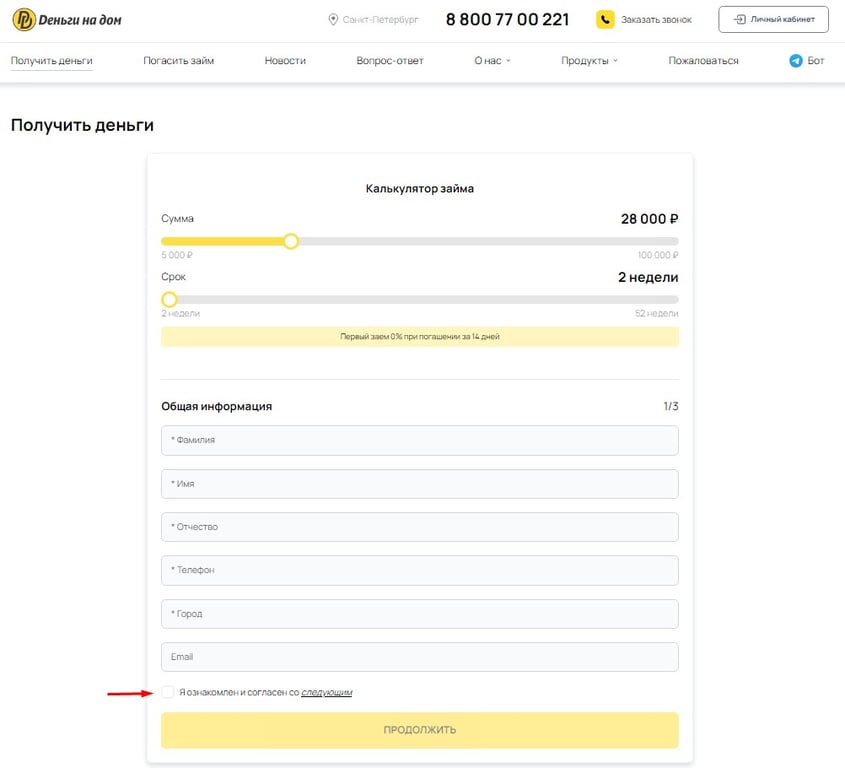 - Зайдите на официальный сайт МФО “Деньги на Дом”.