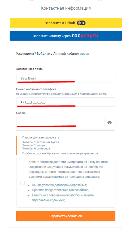 - Заполните анкету о займе онлайн и подтвердите условия.