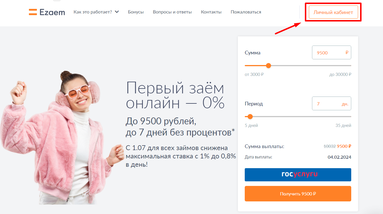 - Посетите официальный сайт Ezaem и найдите раздел "Личный кабинет".