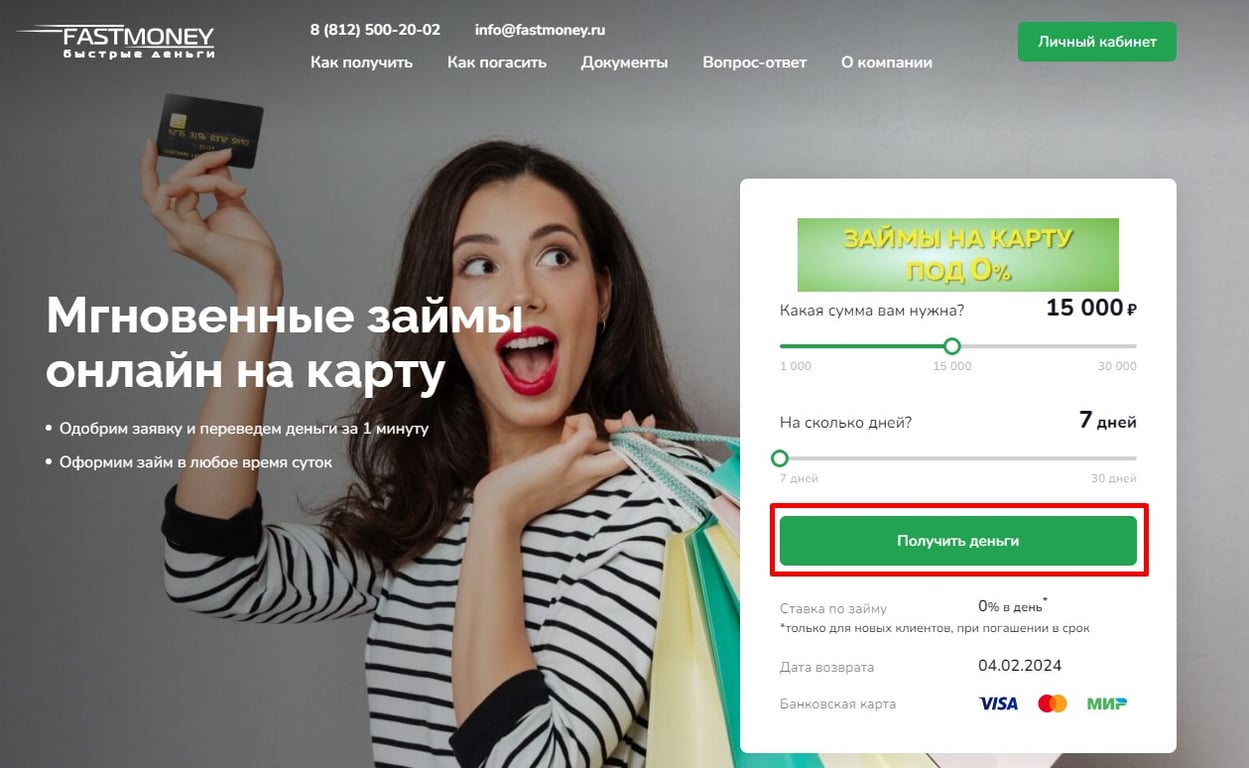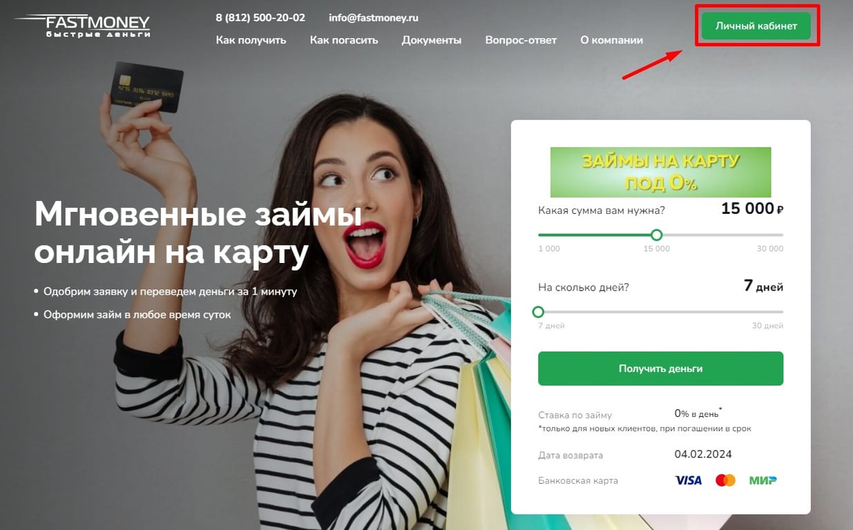 Использование личного кабинета Fastmoney для получения онлайн займа