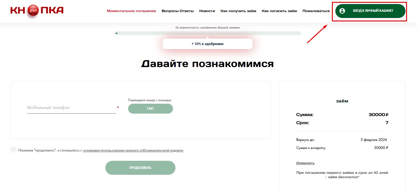 Как пользоваться личным кабинетом МФО “Кнопка Деньги”