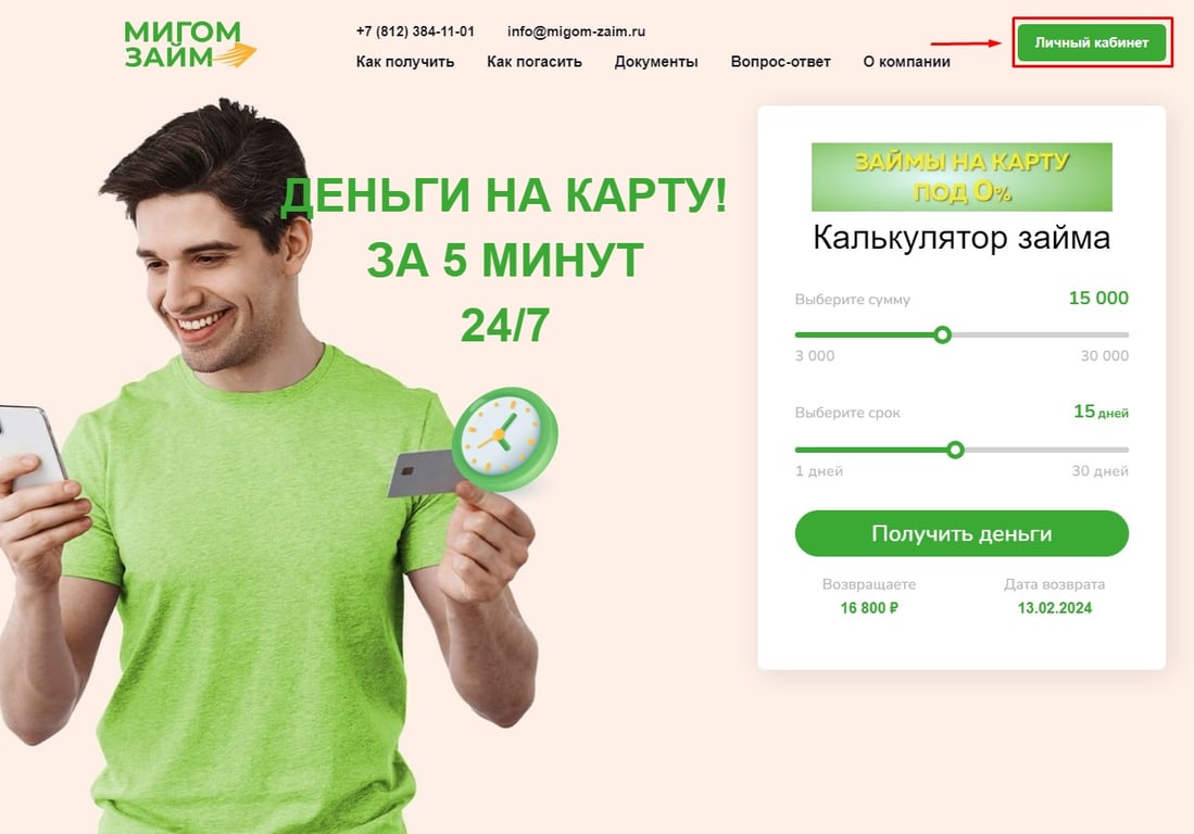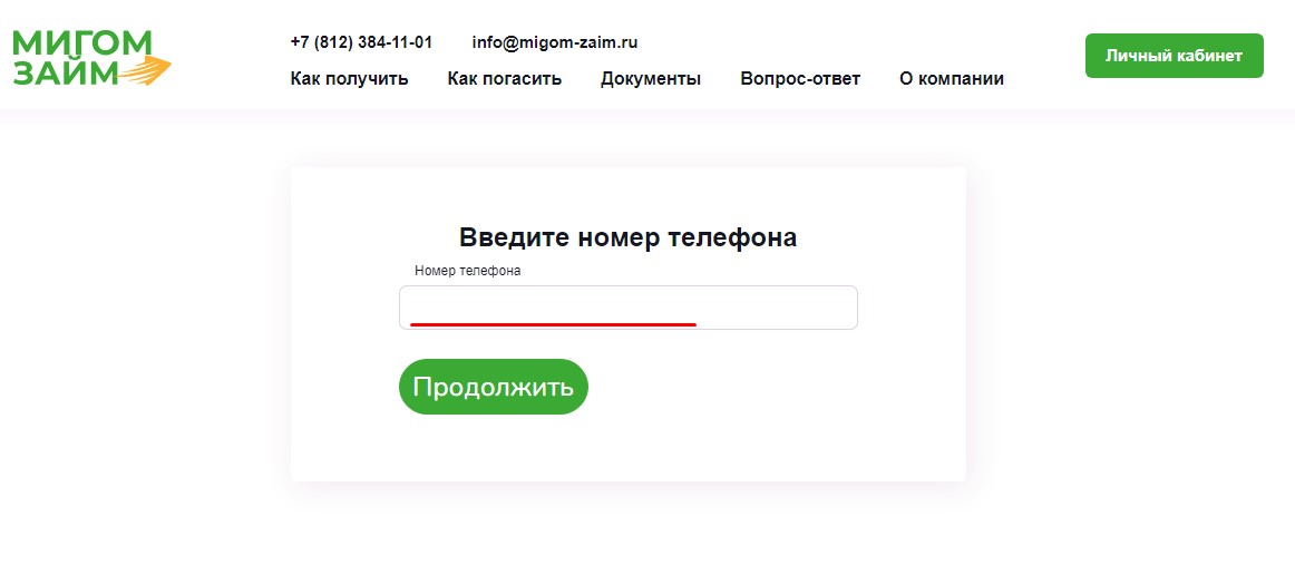 Личный кабинет Мигом Займ