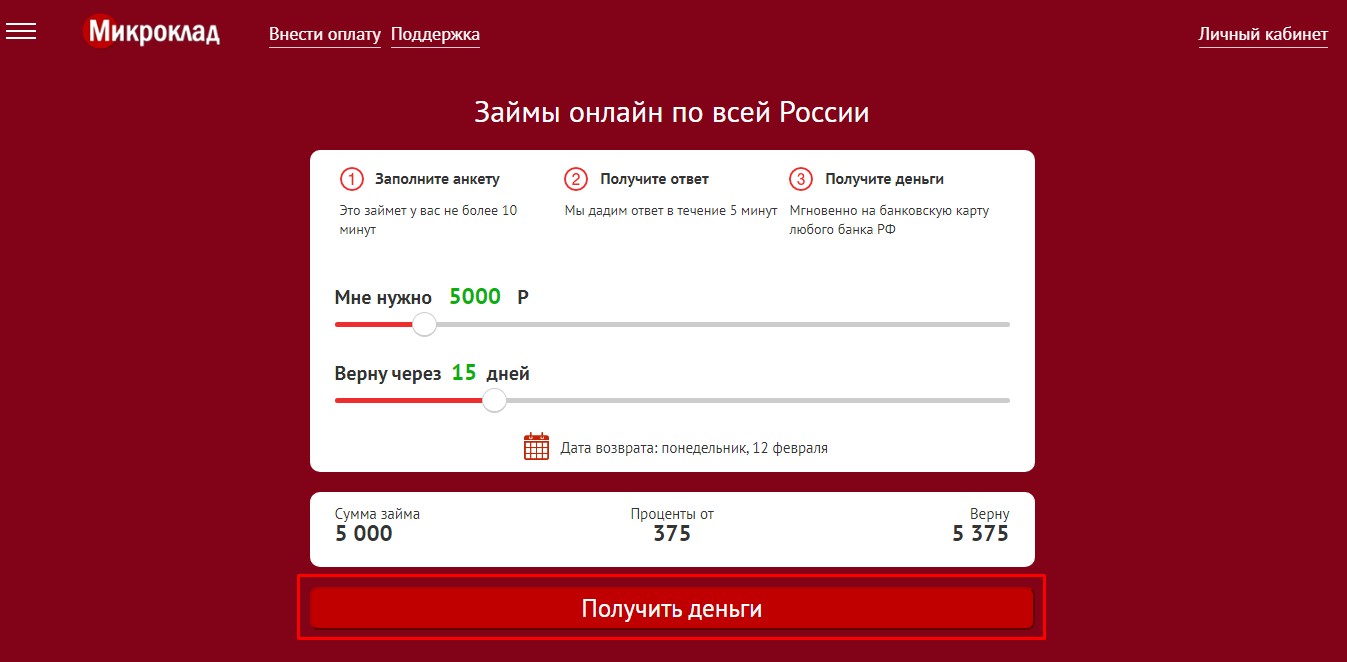 - Перейдите на официальный сайт МФО Микроклад.
