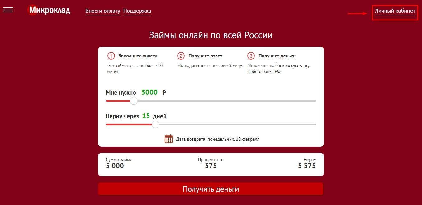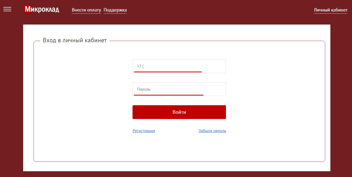 Личный кабинет Микроклад